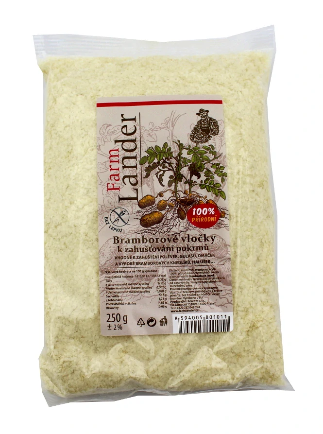 Bezlepkové Bramborové vločky k zahuštění 250gSkladem 7 ks40 Kč/ ks36 Kč bez DPH