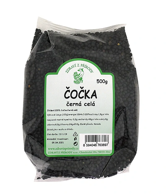 Čočka černá celá 500gSkladem 4 ks49 Kč/ ks44 Kč bez DPH