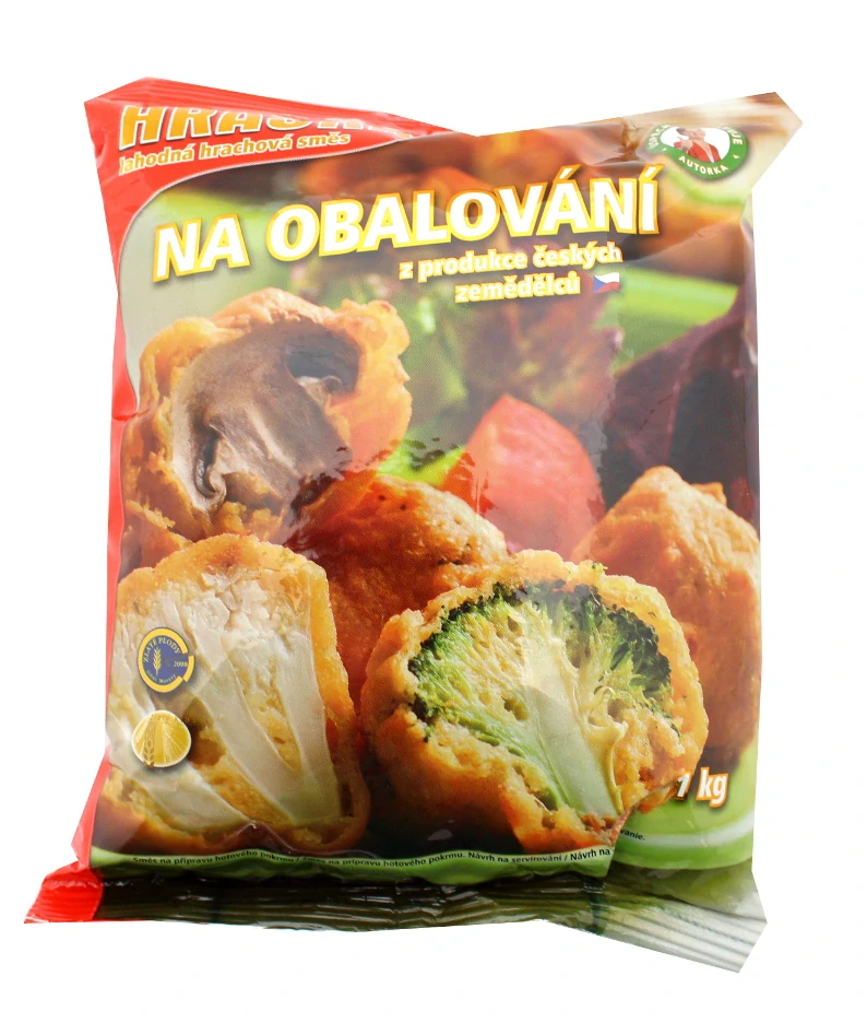 Smícháme 100 g hrašky a 150 ml vody na těstíčko (hustota řidší jako je hořčice). Naporcujeme 300 g zeleniny. Kousky zeleniny namáčíme v těstíčku. Klademe je to vyšší vrstvy rozehřátého oleje (160 °C) a smažíme.