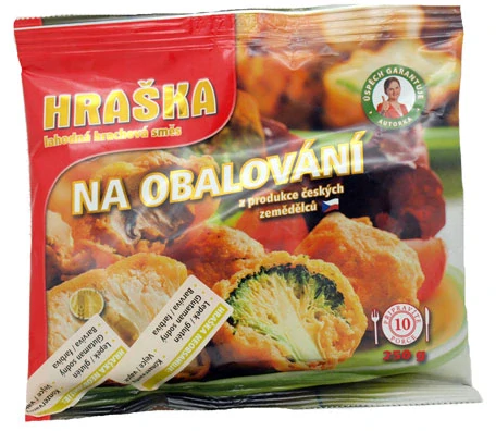 Smícháme 100 g hrašky a 150 ml vody na těstíčko (hustota řidší jako je hořčice). Naporcujeme 300 g zeleniny. Kousky zeleniny namáčíme v těstíčku. Klademe je to vyšší vrstvy rozehřátého oleje (160 °C) a smažíme.