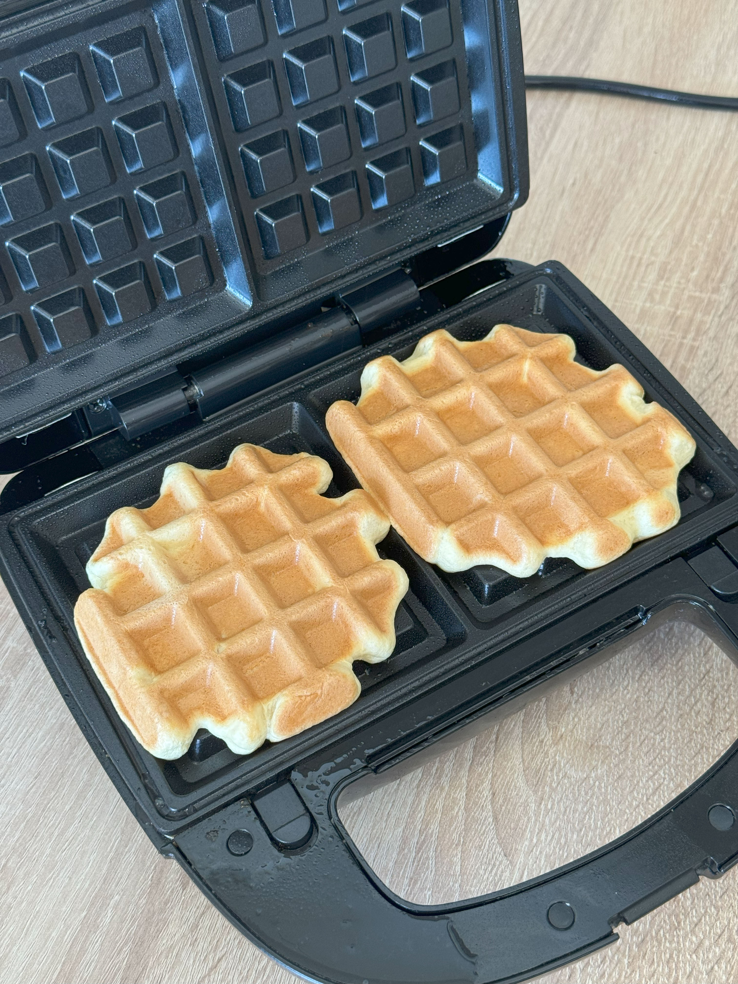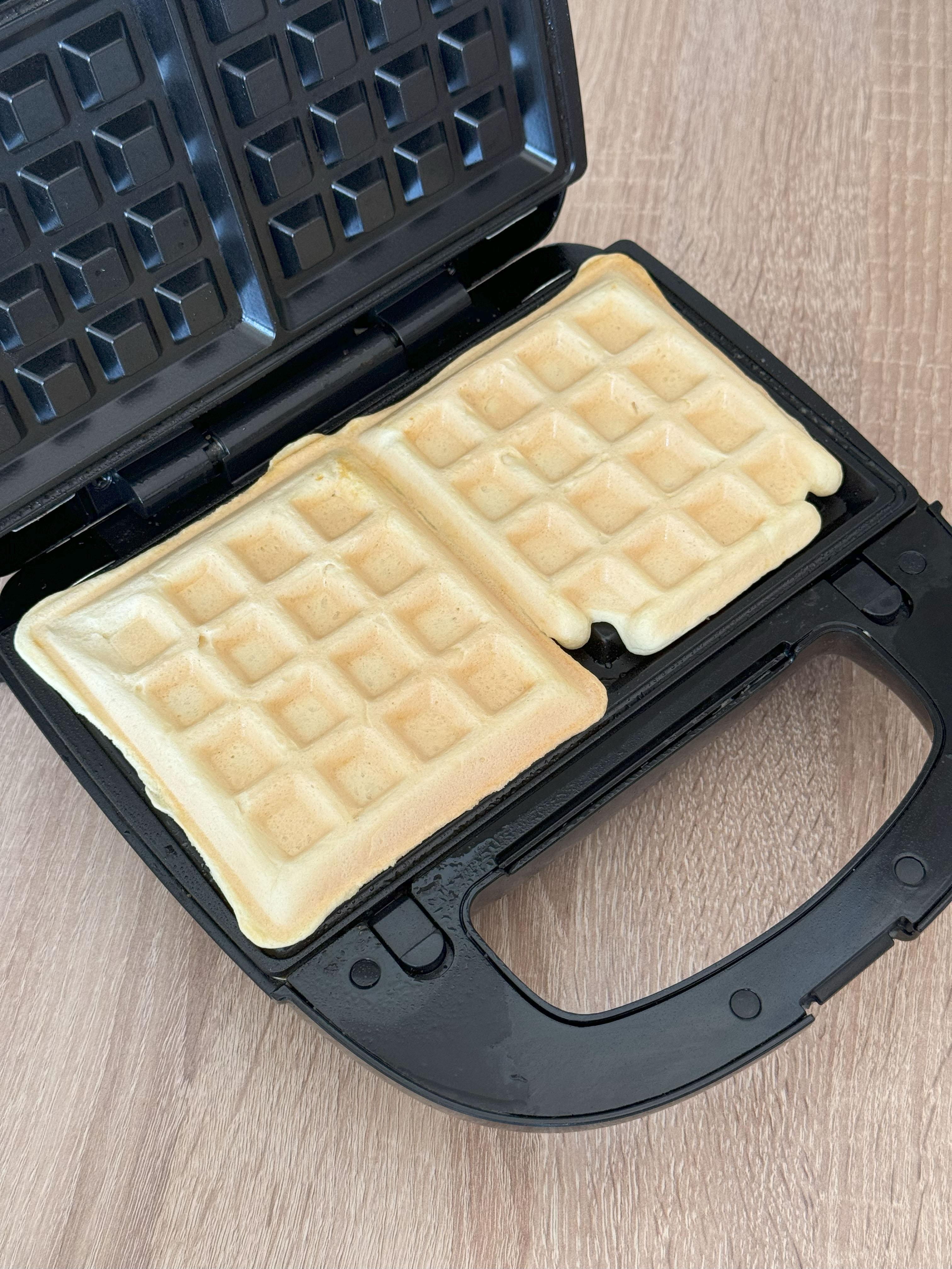 Dále si rozehřejeme vaflovač, který trochu omastíme aby se nám vafle daly jednoduše vyklopit - já použil olej ve spreji. Následně vložíme podle velikosti stroje množstí těsta a pečeme alespoň 7 minut.