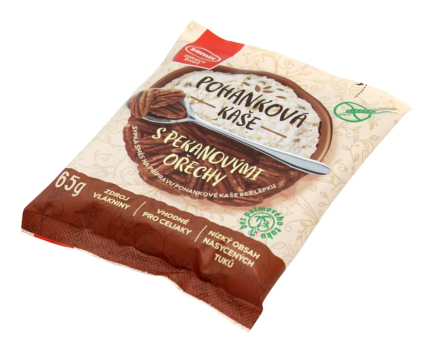 Pohanková kaše s pekanovými ořechy 65gSkladem > 20 ks25 Kč/ ks22 Kč bez DPH