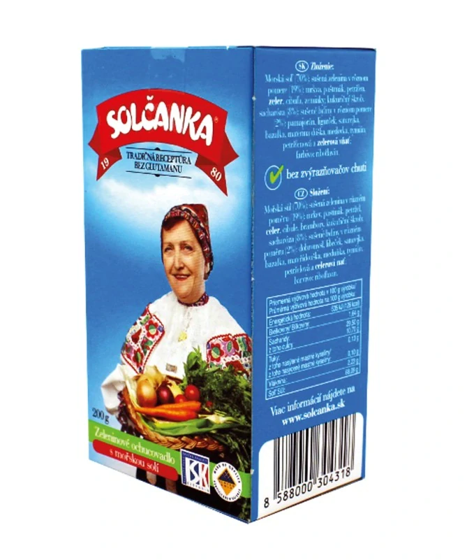 Solčanka s mořskou solí je ochucovadlo bez glutamanu vyrobené ze směsi zeleniny a bylinek podle tradiční receptury. Solčanka je určená na ochucení a přípravu nejen masových pokrmů, ale pro praktické využití při přípravě široké škály různorodých typů jídel a pokrmů.