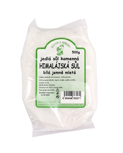 Sůl himalájská bílá jemná 500gSkladem 5 ks25 Kč/ ks22 Kč bez DPH
