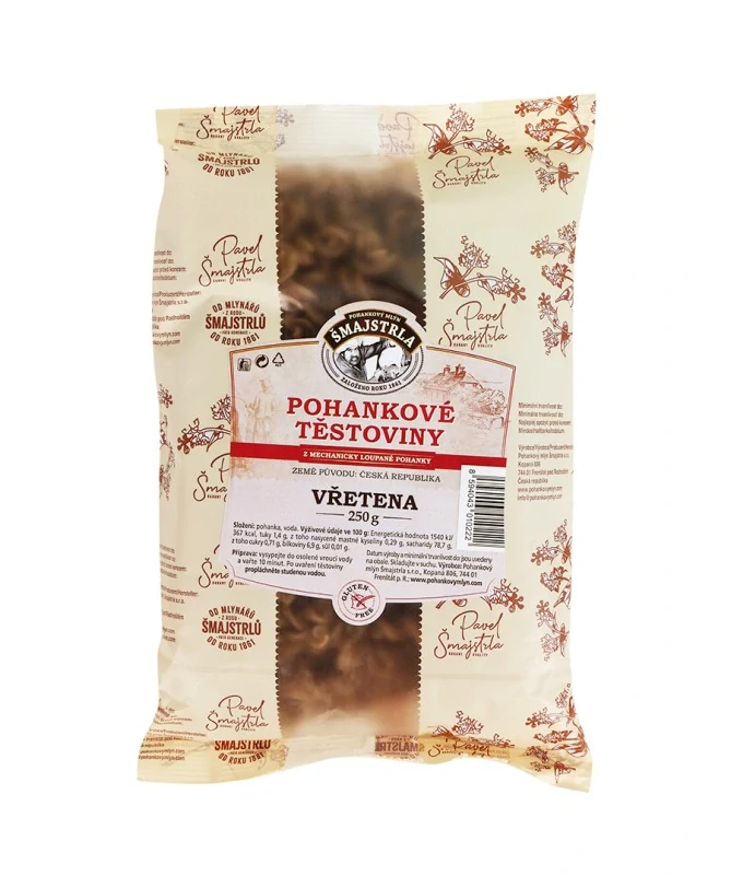 Těstoviny bezlepkové- Pohanková vřetena 250gSkladem 1 ks56 Kč/ ks50 Kč bez DPH
